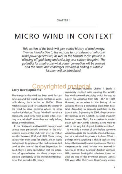 This comprehensive book presents a thorough analysis of the wind turbine technology that is suitable for use on a small scale and presents an overview of the process of installation. Covering both small-scale on- and off-grid installations, Small-Scale Wind Power Generation is essential reading for all those wanting to use wind power to produce clean energy: it will help them to understand the nature of the wind in their area, to appraise potential sites and to assess the likely capacity of any wind power turbines that are installed. The authors also discuss the computer software that is suitable for predicting the likely financial benefits and provide valuable information about how to assess the economic viability of wind installation and how to calculate the resultant carbon savings.