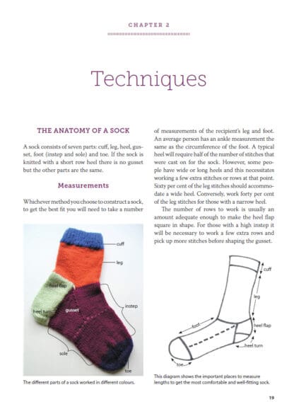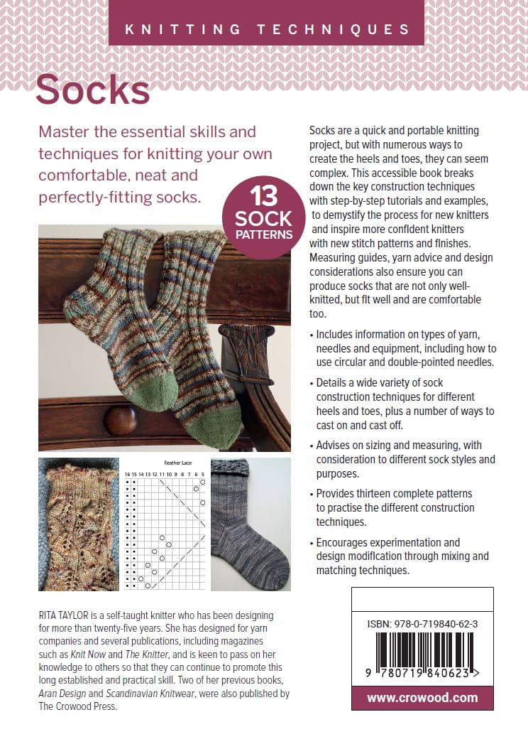 Socks are a quick, portable knitting project, but with numerous ways to create the heels and toes, they can seem complex. This accessible book breaks down the key construction techniques with step-by-step tutorials and examples, to demystify the process for new knitters and inspire more confident knitters with new stitch patterns and finishes. Measuring guides, yarn advice and design considerations also ensure you can produce socks that are not only well-knitted, but fit well and are comfortable too. Topics covered include: types of yarn, needles and equipment, including how to use circular and double pointed needles; sock construction techniques for different heels and toes and finally, sizing and measuring with consideration to different sock styles and purposes. There are thirteen complete sock patterns to practise the different construction techniques.
