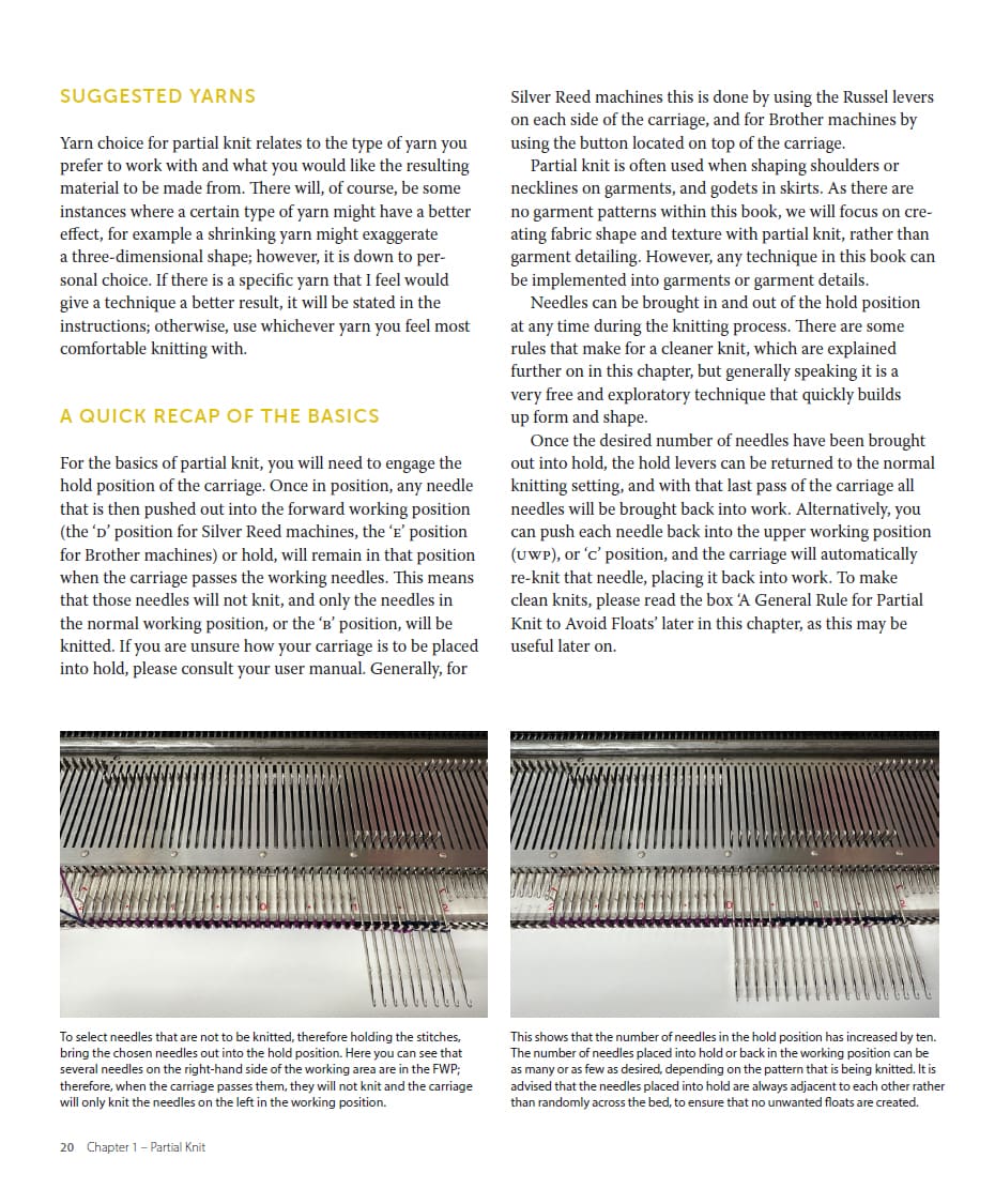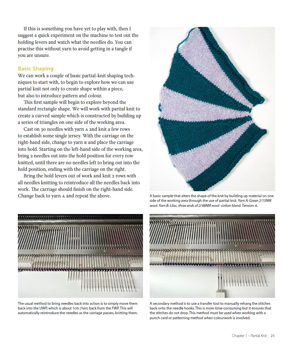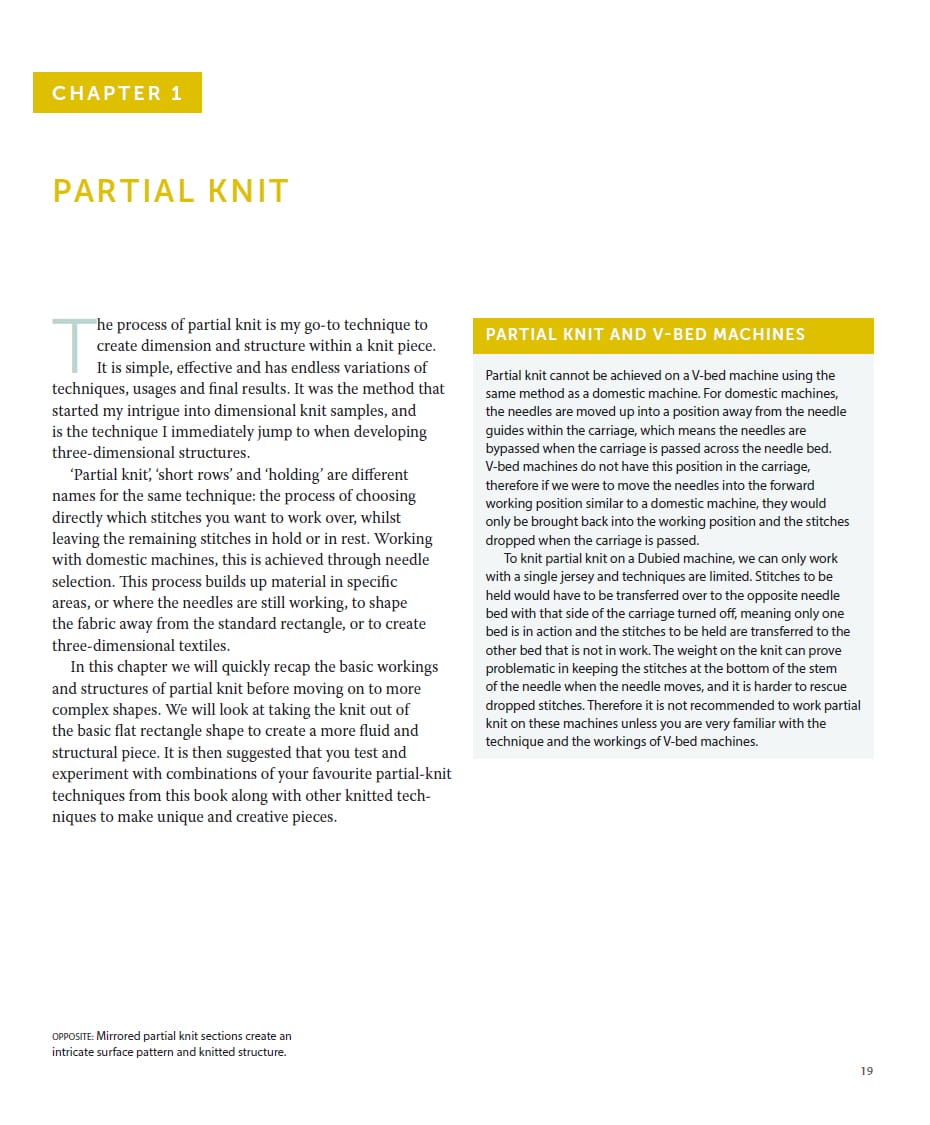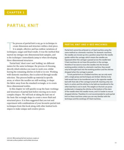 Appropriate for all machine knitters who have explored the basics, each chapter focuses on the fundamentals of a technique before developing them into more creative compositions. Suitable for knitters with a single- or double-bed domestic machine, or for those with a V-bed, the techniques are described in detail alongside inspirational images and clear charts, making this book the perfect tool for students, designers, researchers and home knitters.