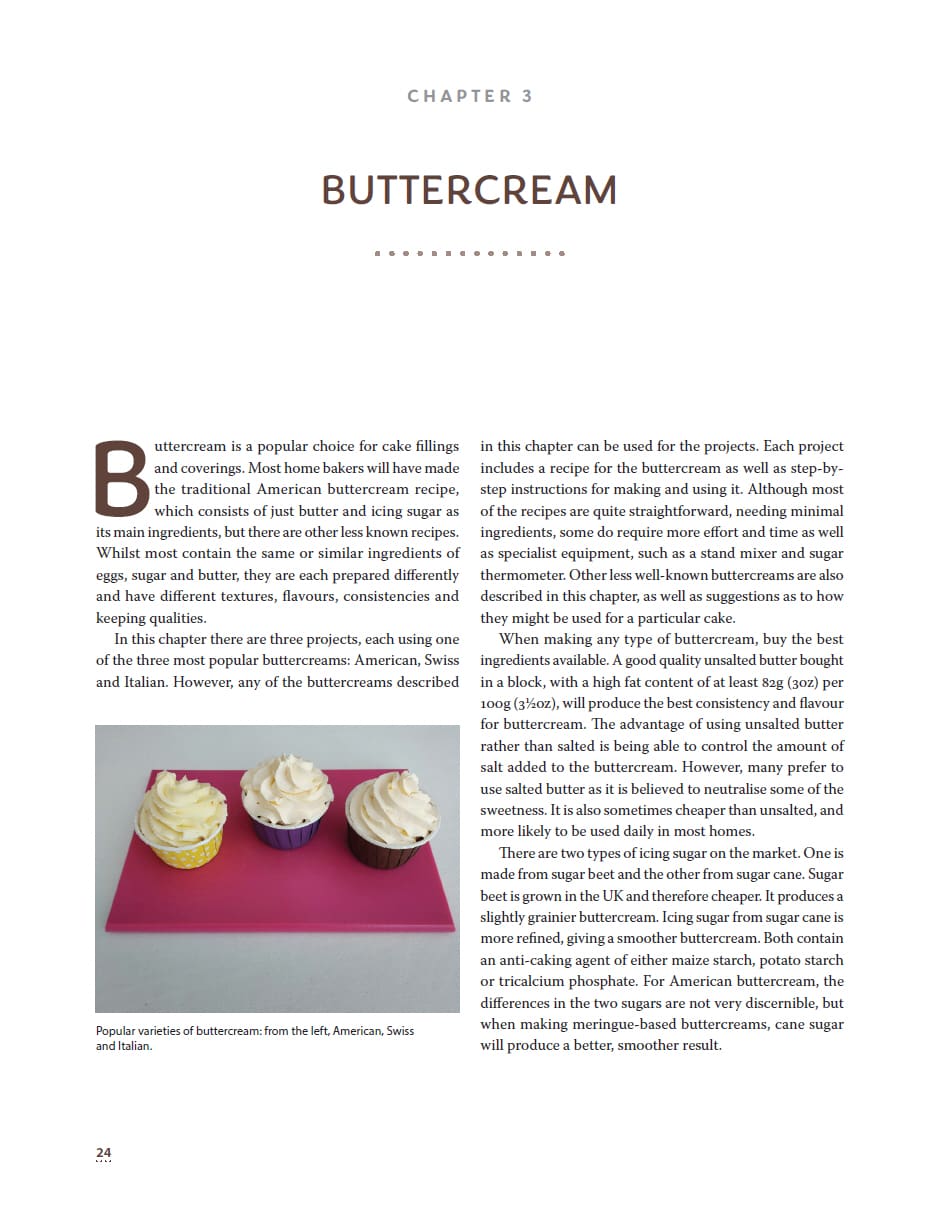 Using detailed, fully illustrated step-by-step instructions, Techniques and Tips for Covering Cakes provides practical guidance on how to cover a variety of cakes using six different types of cake coverings. Some of the cake coverings are quick to achieve and require minimal preparation whilst other projects will provide the keen cake decorator with more of a challenge. Popular coverings such as buttercream and chocolate are included as well as sugarpaste, royal icing, marzipan, fruit and nuts.