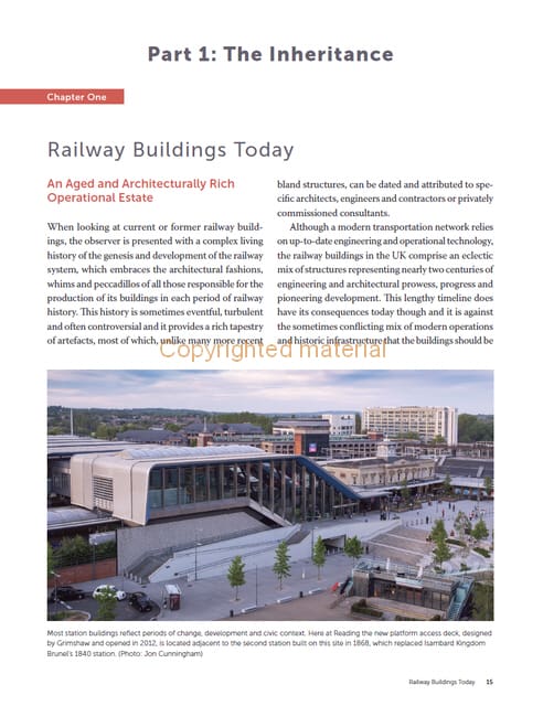 Topics covered include: the context of railway architecture today; the history of how it came into existence; the evolution of different railway building types; the unique aspects of railway building design, and finally, the key railway development periods and their architectural influences.