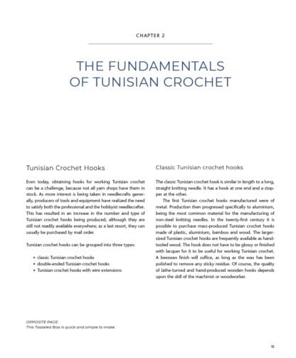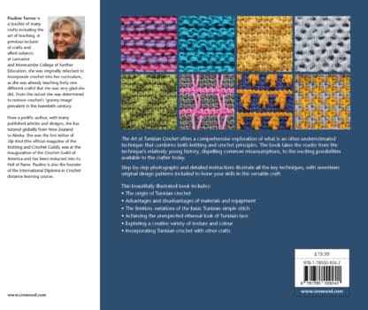 Until the twenty-first century, Tunisian crochet was a little-used style of crochet that was considered relatively simple and unadventurous. Fortunately, nowadays, that has all changed. The Art of Tunisian Crochet offers a comprehensive exploration of what is an often underestimated technique that combines both knitting and crochet principles. The book takes the reader from the technique’s relatively young history, dispelling common misassumptions, to the exciting possibilities available to the crafter today. This beautifully illustrated book includes the origin of Tunisian crochet; advantages and disadvantages of materials and equipment; the limitless variations of the basic Tunisian simple stitch; achieving the unexpected ethereal look of Tunisian lace; exploring a creative variety of texture and colour, and finally, incorporating Tunisian crochet with other crafts.