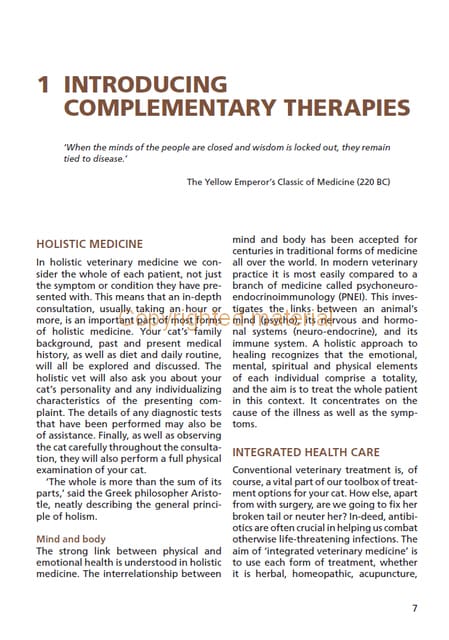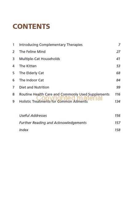 The Holistic Cat is a comprehensive guide to natural health care for your cat. It explores the complementary treatments available to look after your cat in a range of everyday situations, as well as for first aid and focuses on diet, natural remedies and preventative and integrated health care. Topics covered also include the understanding of the feline mind; kitten care, multiple cat households and indoor cats; care of the elderly cat and the importance of nutrition and how to provide a balance diet. Holistic treatments for common ailments, including abscesses, dental health, and heart and respiratory problems are covered too.