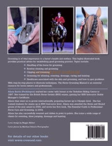 Alison Bartle (Pocklington) started her career with horses at the Yorkshire Riding Centre in 1987. She trained for the British Horse Society (BHS) exams, gaining her BHS Instructor Stable Manager's Certificate. Alison then went on to groom internationally, preparing horses up to Olympic level. She has trained students for exams up to BHS Instructor level. Alison was awarded the Horse and Hound groom of the year award in 2000, and wrote her first book, The Essential Guide to Professional Horse Care and Grooming, in 2004.