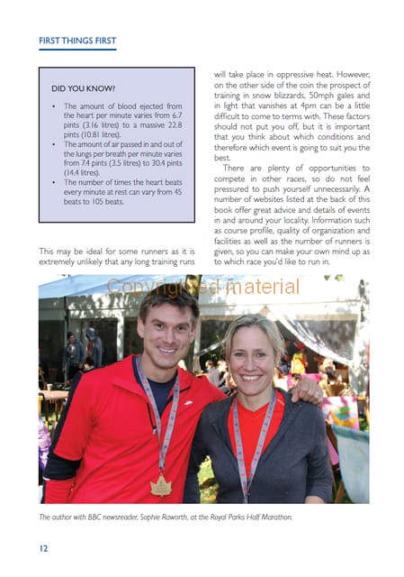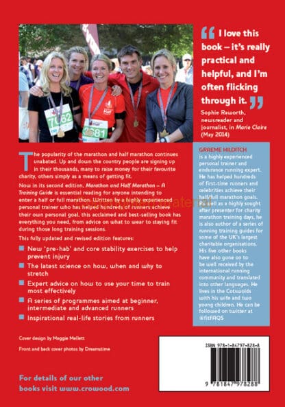 The popularity of the marathon and half marathon continues unabated. Up and down the country people are signing up in their thousands, many to raise money for their favourite charity, others simply as a means of getting fit. Whatever the motive, they are testing endurance events requiring serious preparation. Now in its second edition, Marathon and Half Marathon – A Training Guide is essential reading for anyone intending to enter a half or full marathon. Written by a highly experienced personal trainer who has helped hundreds of runners achieve their own personal goal, this acclaimed and best-selling book has everything you need, from advice on what to wear to staying fit during those long training sessions. This fully updated and revised edition features: New ‘pre-hab’ and core stability exercises to help prevent injury; the latest science on how, when and why to stretch; expert advice on how to use your time to train most effectively; a series of programmes aimed at beginner, intermediate and advanced runners and finally, inspirational real-life stories from runners.
