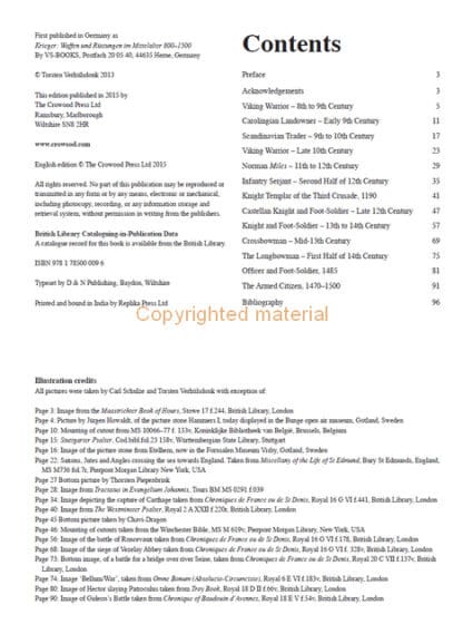 In medieval times an individual often needed to defend his life, his family and his property. Mercenaries earned their living by hiring out their skills, while feudal noblemen regularly mustered their men-at-arms and their subordinate vassals and tenants to provide military service, even to the point of leading them on Crusades to the Holy Land and elsewhere. In the later medieval period the growing cities required their citizens to take up arms as militia in defence of the community during times of external threat. In The Medieval Fighting Man – Europa Militaria Special No 18, meticulous use is made of the sources available to enable the materials, colours and patterns used for reconstructed clothing to represent the ‘real thing’ as accurately as possible. Fortunately, great numbers of medieval weapons and pieces of armour survived and can now be viewed in displays, and these form the basis of the arms presented in this book.