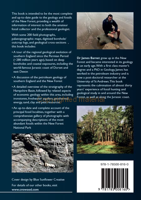 Dr James Barnet grew up in the New Forest and became interested in its geology at an early age. With a first class master's degree and a PhD in Geology, James has worked in the petroleum industry and is now a post-doctoral researcher at the University of St Andrews. This book represents the culmination of almost thirty years' experience of fossil hunting and geological study in and around the New Forest, as well as along the Jurassic coast.