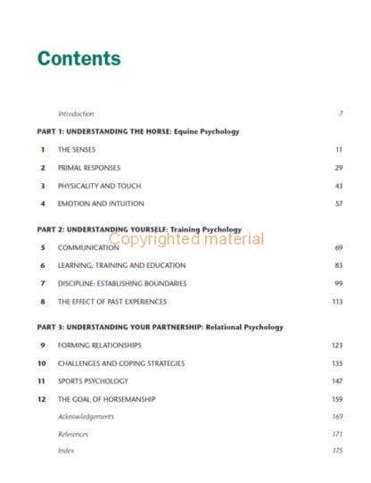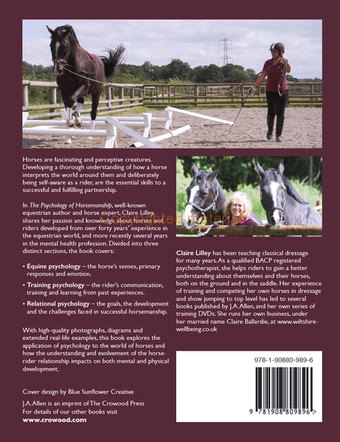 Horses are fascinating and perceptive creatures. Developing a thorough understanding of how a horse interprets the world around them and deliberately being self-aware as a rider, are the essential skills to a successful and fulfilling partnership. In The Psychology of Horsemanship, well-known equestrian author and horse expert, Claire Lilley, shares her passion and knowledge about horses and riders developed from over forty years’ experience in the equestrian world, and more recently several years in the mental health profession. Divided into three sections, the book covers: Equine psychology – the horses’s senses, primary responses and emotion; Training psychology – the rider’s communication, training and learning from past experiences; Relational psychology – the goals, the development and the challenges faced in successful horsemanship. With high-quality photographs, diagrams and extended real-life examples, this book explores the application of psychology to the world of horses and how the understanding and evolvement of the horse-rider relationship impacts on both mental and physical development.