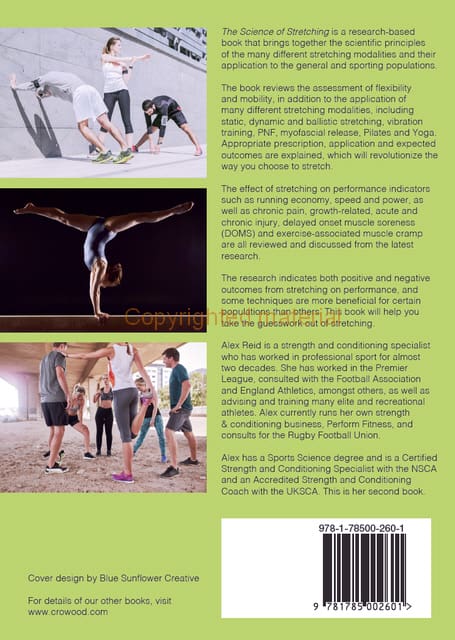 The Science of Stretching is a research-based book that brings together the scientific principles of many different modalities of stretching and its application to the general and sporting populations. The book reviews static stretching, dynamic stretching, ballistic stretching, vibration platform, PNF, myofascial release, Pilates and Yoga, as well as post-operative, chronic and acute injury benefits. Appropriate prescription, application and expected outcomes are explained, which will revolutionize the way you choose to stretch.