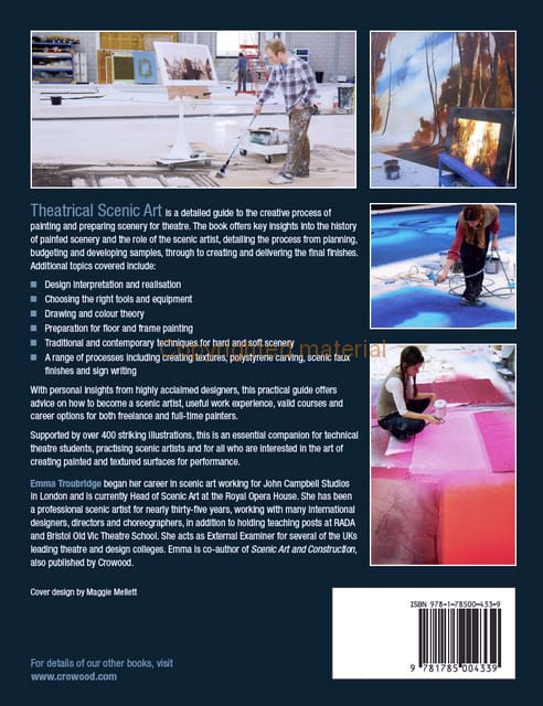 Emma Troubridge began her career in scenic art working for John Campbell Studios in London and is currently Head of Scenic Art at the Royal Opera House. She has been a professional scenic artist for nearly thirty-five years, working with many international designer, directors and choreographers, in addition to holding teaching posts at RADA and Bristol Old Vic Theatre School. She acts as External Examiner for several of the UK's leading theatre and design colleges. Emma is co-author of Scenic Art and Construction, also published by Crowood.