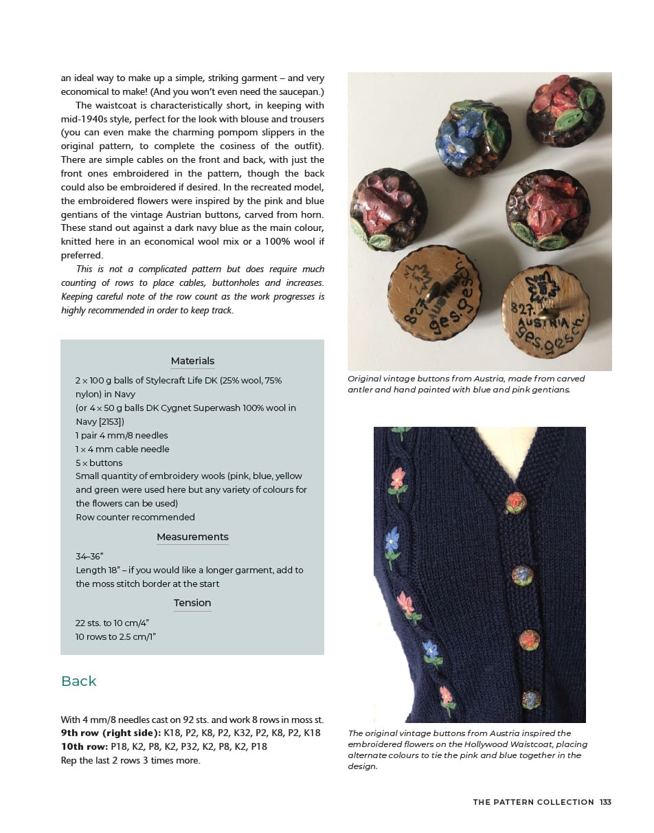 Linda Ivell has been recreating vintage knitwear for over forty years. As an Art Historian working in museums, she has explored prestigious costume collections, researching and writing about historical fashions and our textiles heritage. A member of the Knitting and Crochet Guild, she is happiest when surrounded by wool, and all the possibilities a strand of yarn can inspire. She recreates vintage knitwear with her own label of Knitting for Victory.