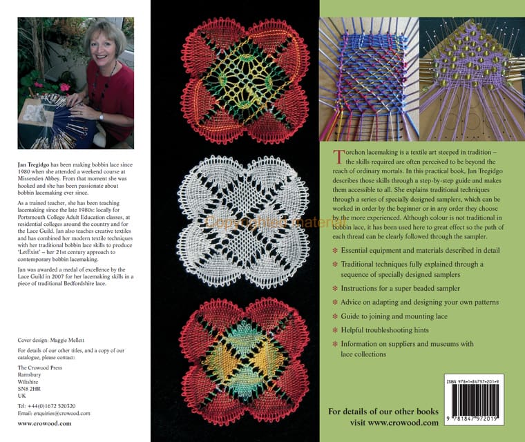 Torchon lacemaking is a textile art steeped in tradition – the skills required are often perceived to be beyond the reach of ordinary mortals. In this practical book, Jan Tregidgo describes those skills through a step-by-step guide and makes them accessible to all. She explains traditional techniques through a series of specially designed samplers, which can be worked in order by the beginner or in any order they choose by the more experienced. Although colour is not traditional in bobbin lace, it has been used here to great effect so the path of each thread can be clearly followed through the sampler.