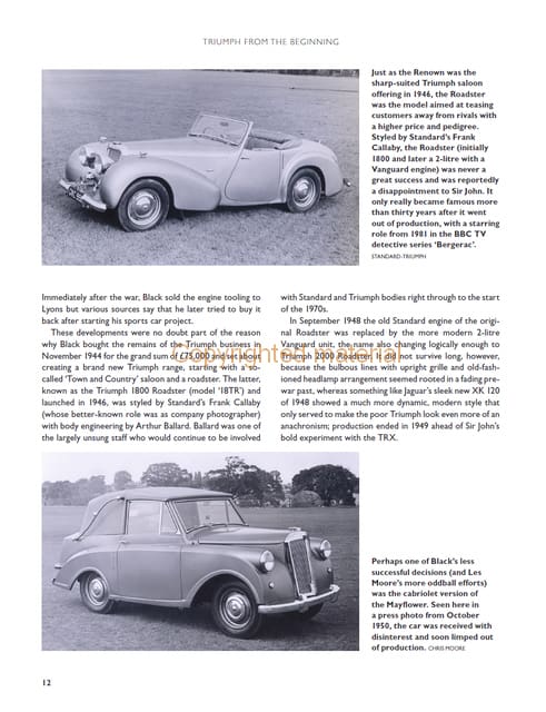 This book tells the life story of the much-loved Triumph TR6 in unprecedented detail, bringing to life the genesis and magnificent history of one of the most-loved British sports cars of its era. Covering the design, development and manufacture of the car as well as its motorsport history, it shows how this last bastion of traditional British sports car motoring went against the grain of troubled automotive times, outstripping its predecessors in sales and popularity.
