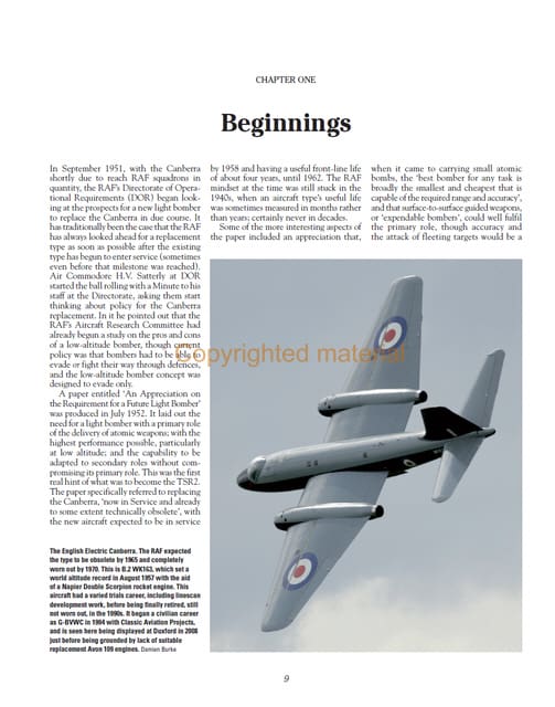 More than forty years after its cancellation, the BAC TSR2 is still a controversial aircraft. Years ahead of its time, it was abruptly cancelled by a new government when flight testing had ony just begun. Built to a demanding RAF requirement , the BAC TSR2 was a revolutionary low-level strike aircraft able to deliver a tactical nuclear weapon at supersonic speed and low altitude to evade enemy radar. This fascinating new book describes in detail the aircraft, its history and the events of its cancellation. Many hitherto unseen photographs and diagrams support the detailed text, which benefits from extensive research in the BAC archives and access to newly rediscovered material. Topics covered: Background to the requirement, and competing designs Development and production The flight-testing programme The full story of the cancellation and its aftermath Unbuilt variants Detailed specifications.