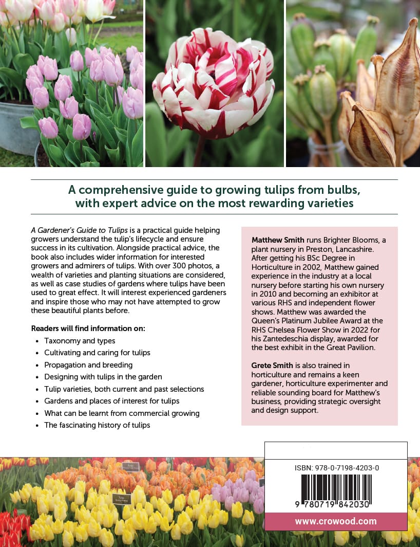 A comprehensive guide to growing tulips from bulbs, with expert advice on the most rewarding varieties. A Gardener’s Guide to Tulips is a practical guide helping growers understand the tulip’s lifecycle and ensure success in its cultivation. Alongside practical advice, the book also includes wider information for interested growers and admirers of tulips. With over 300 photos, a wealth of varieties and planting situations are considered, as well as case studies of gardens where tulips have been used to great effect. It will interest experienced gardeners and inspire those who may not have attempted to grow these beautiful plants before.