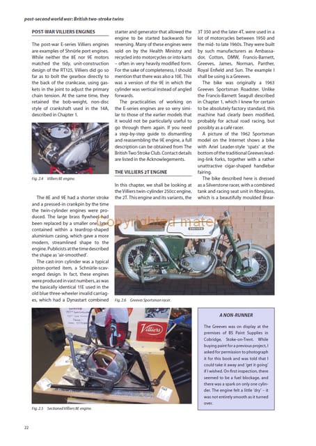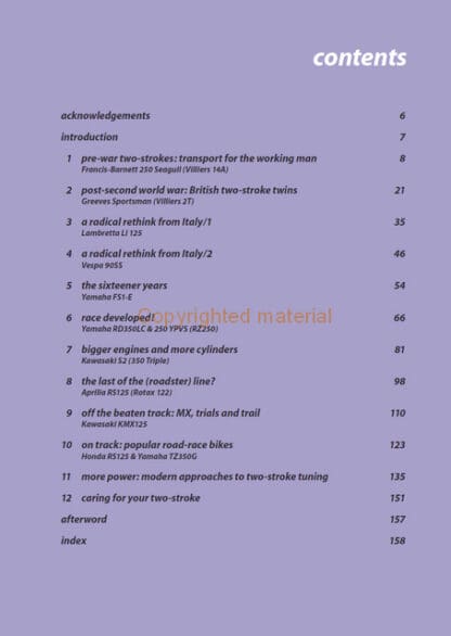 A workshop guide to strip-down, rebuild, maintenance and repair of two-stroke motorcycle engines. Author Dave Boothroyd covers the principles and practice of two-stroke engine work, examining a wide range of marques and road, racing and trail motorcycles. With over 450 colour photographs, this new book covers: the chronological development of two-stroke engines and workshop procedures for each era; the examination of each major engine component in turn, including cylinder head, piston, piston rings, crankcase, flywheel, bearings, inlet manifold, clutch, gearbox and primary drive, and, finally, racing motorcycles and tuning engines for best performance; diagnosing problems and workshop safety.
