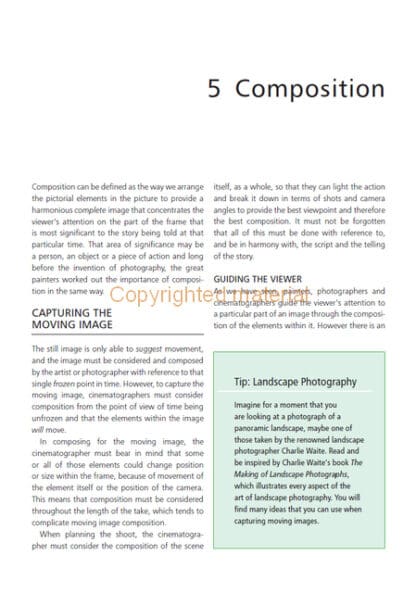Cinematography is the art and craft of visualizing and recording the moving image. The cinematographer therefore has to use their technical and creative skills to photographically capture the mood of the film and the vision of the director. Done properly, they add the magic and depth to a film, giving it a defining edge. This practical book explains the principles behind cinematography, as well as the skills of the cinematographer. Having described the equipment, it looks at how to interpret the script and advises on how to find a visual style. Written by a respected cinematographer, it also explains the roles of the camera crew and the importance of working as a team.