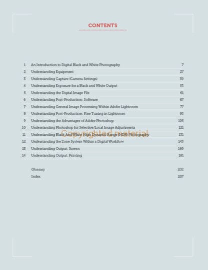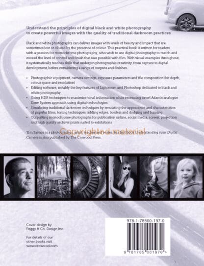 Black and white photography can deliver images with levels of beauty and impact that are sometimes lost or diluted by the presence of colour. This practical book is written for readers with a passion for monochrome photography, who wish to use digital photography to match and exceed the level of control and finish that was possible with film. With visual examples throughout, it systematically teaches skills that underpin photographic creativity, from capture to digital development, before considering a range of outputs and finishes.