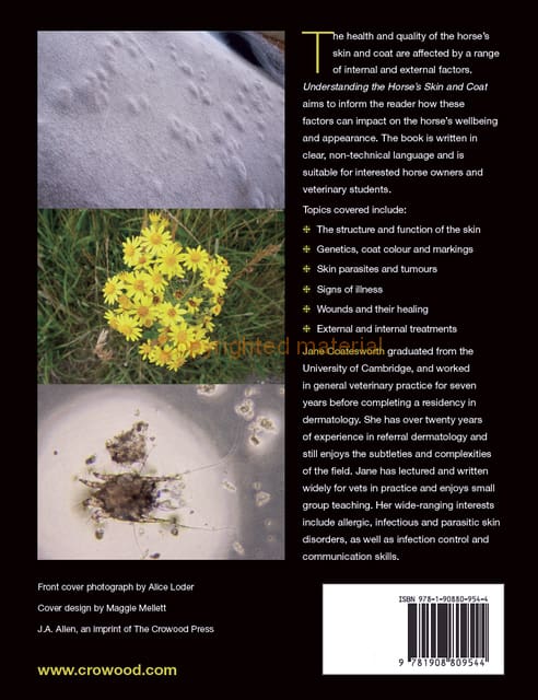 The health and quality of the horse’s skin and coat are affected by a range of internal and external factors. Understanding the Horse’s Skin and Coat aims to inform the reader how these factors can impact on the horse’s wellbeing and appearance. The book is written in clear, non-technical language and is suitable for interested horse owners and veterinary students. Topics covered in this new book include the structure and function of the skin and coat; genetics, coat colour and markings; parasites and skin diseases; signs of illness; wounds and healing and, finally, external and internal treatments.