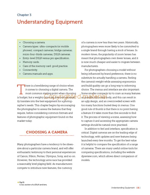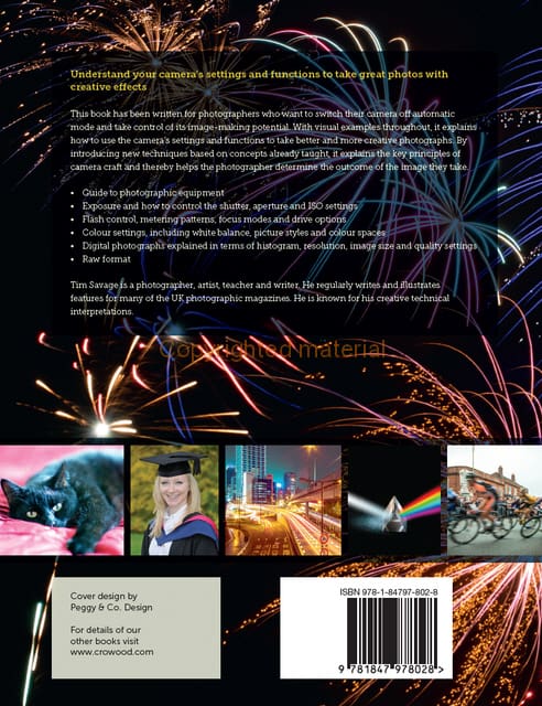 This book has been written for photographers who want to switch their camera off automatic mode and take control of its image-making potential. With visual examples throughout, it explains how to use the camera’s settings and functions to take better and more creative photographs. By introducing new techniques based on concepts already taught, it explains the key principles of camera craft and thereby helps the photographer determine the outcome of the image they take. Many topics are covered including: a guide to photographic equipment; exposure and how to control the shutter, aperture and ISO settings; flash control, metering patterns, focus modes and drive options; colour settings, including white balance, picture styles and colour spaces and digital photographs are explained in terms of histogram, resolution, image size and quality settings.