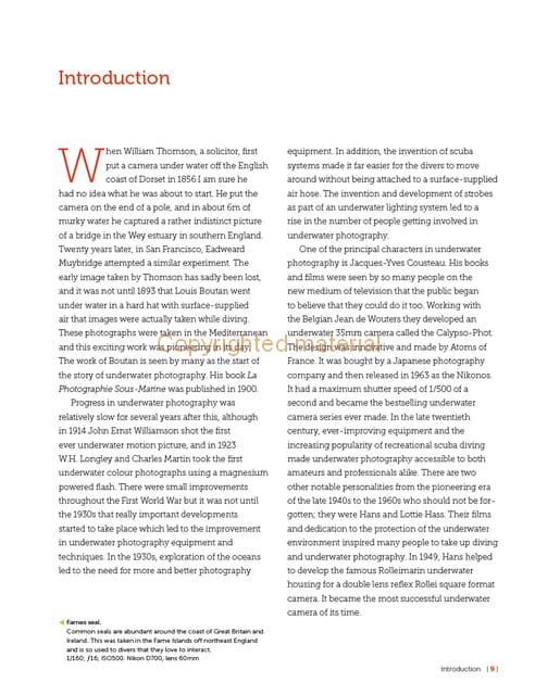 Underwater photography is a challenging discipline. To capture an underwater world of glorious colours, extraordinary creatures and mysterious depths, you must have confidence in your diving abilities and be very comfortable with your camera. This practical book explains and offers advice to the reader on both the art and the science involved in capturing stunning underwater shots. Contents include: