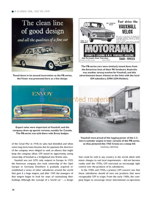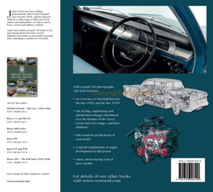 Vauxhalls held a special place in the British motoring scene of the mid-twentieth century. Solid, reliable and respectable, they were carefully designed to meet the expectations of buyers and also to meet the global ambitions of General Motors in America, the company that owned the Vauxhall marque. The book covers just over two decades of Vauxhall history, between the late 1950s and the late 1970s, that saw Vauxhall producing a succession of fondly remembered models, including some genuine classics. This new book features the styling, engineering and specification changes introduced over the lifetime of the Victor, Cresta and Viva ranges, and their offshoots. It gives full technical specifications of each model and includes a special examination of engine development in this period. Finally, there is advice about buying each of these models.
