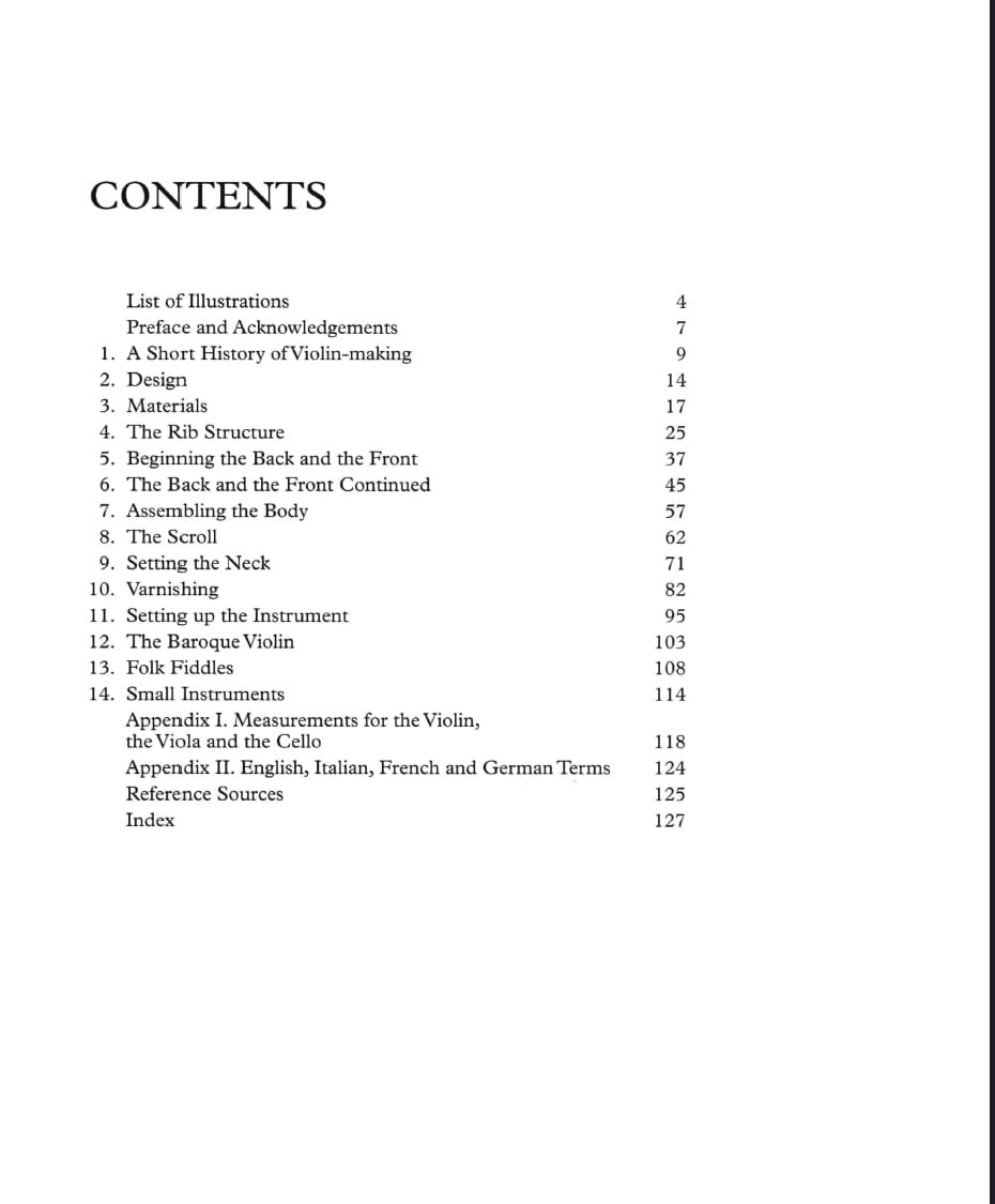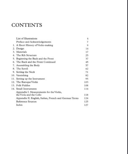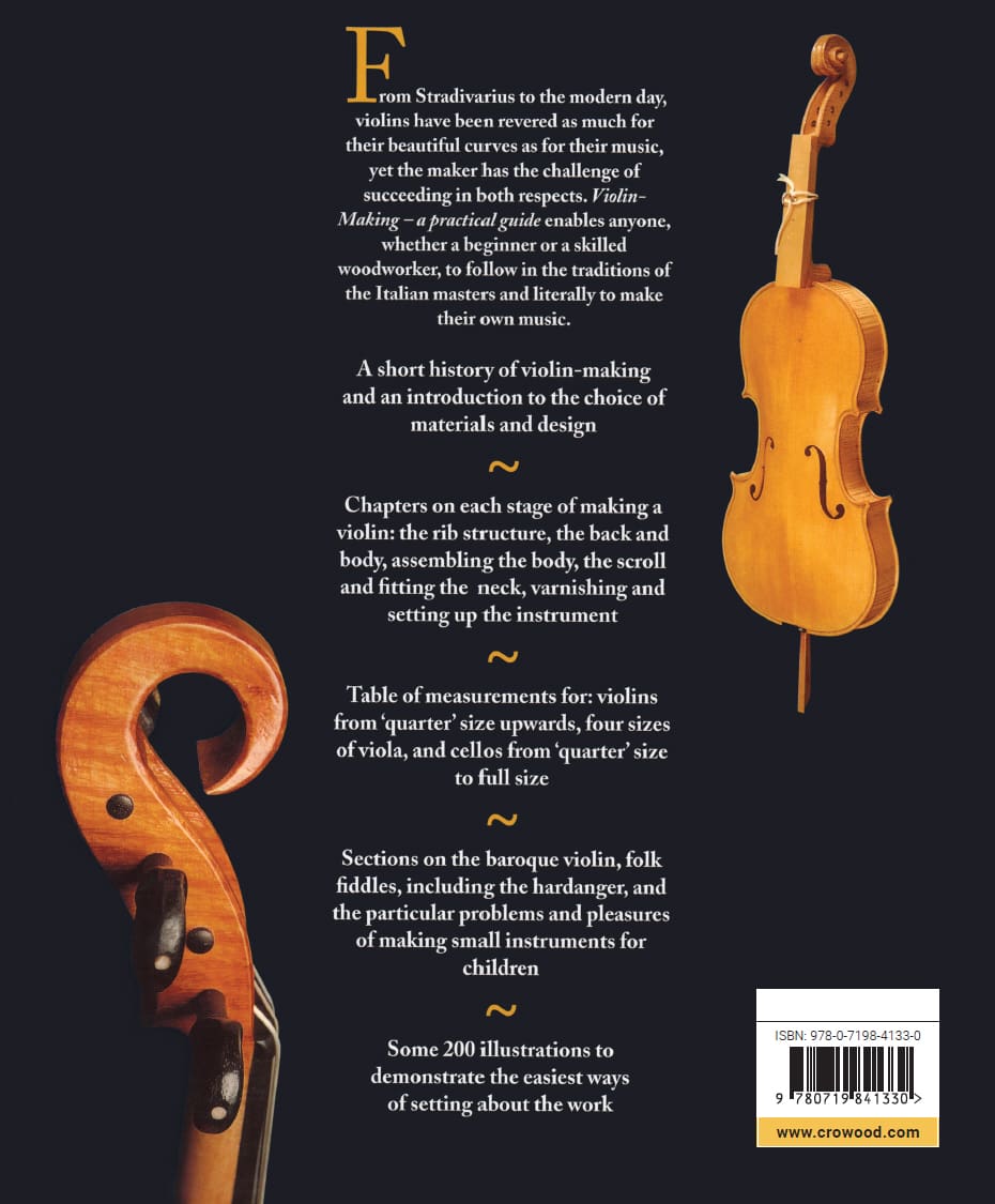 Violin Making – a practical guide is for everyone interested in trying this most beautiful of crafts. Topics covered include: a short history of violin making; introduction to choice of materials and design; various stages of making a violin including varnishing and setting up the instrument; table of measurements for violins, violas and cellos, and finally, sections on the baroque violin, folk fiddles and the hardanger. With nearly 200 illustrations, clear step-by-step instruction and a minimum of necessary tools, this new paperback edition for 2022 leads both amateurs and skilled woodworkers through the delicate and precise techniques, and brings the art of violin making within the reach of all.