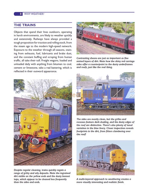 Once seen as a niche practice, the craft of weathering has now become firmly rooted in the railway modelling mainstream. Not simply a means of renderingmodels in layers of dirty paint, weathering involves a myriad of techniques aimed at improving realism, including distinctive surface textures, highlights and shading, burnishing and peeling paint finishes. The weatheringn process beings out the best in a model, making moulded relief or a lustrous livery really stand out. As well as replicating the real world more closely, weathering also helps a model to look at home within a scenic setting. Aimed at modellers of all abilities and eras, this book is an essential guide to creating the most realistic locomotives and rolling stock in any scale.