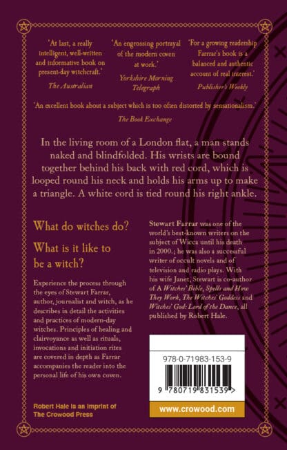 In the living room of a London flat, a man stands naked and blindfolded. His wrists are bound together behind his back with red cord, which is looped round his neck and holds his arms up to make a triangle. A white cord is tied round his right ankle. What do witches do? What is it like to be a witch? Experience the process through the eyes of Stewart Farrar, author, journalist and witch, as he describes in detail in this new paperback edition for 2021 the activities and practices of modern-day witches. Principles of healing and clairvoyance as well as rituals, invocations and initial rites are covered in depth as Farrar accompanies the reader into the personal life of his own coven.