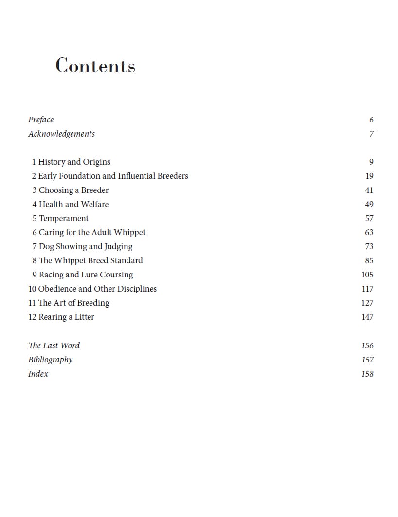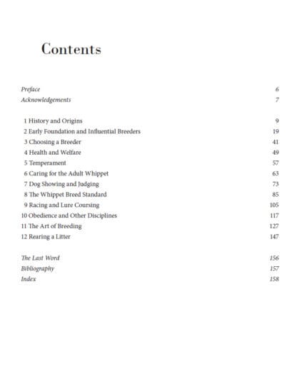 The history of the breed in this book is without doubt the best researched and written bar none. The book covers all of the conventional aspects of keeping Whippets but is also unique, thanks to the inclusion of informal photographs by Pauline Oliver, in conveying the gaiety of a Whippet, its lively nature and sheer joie de vivre. I can think of no better introduction to the breed.