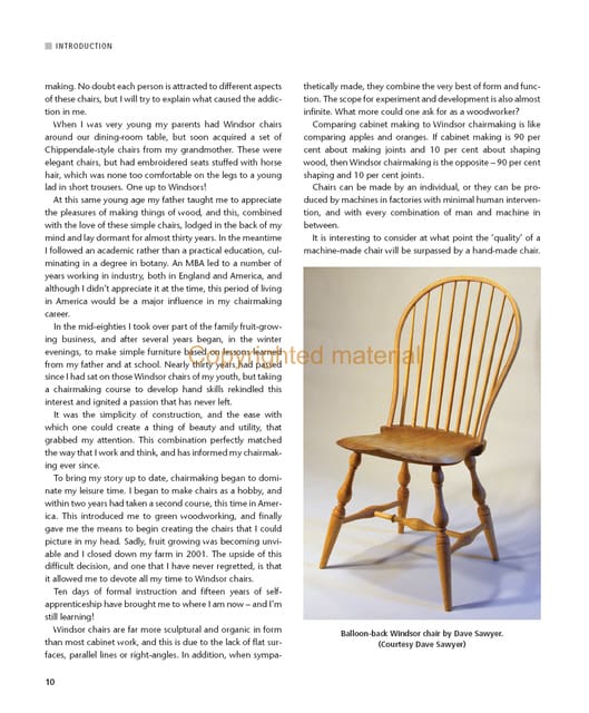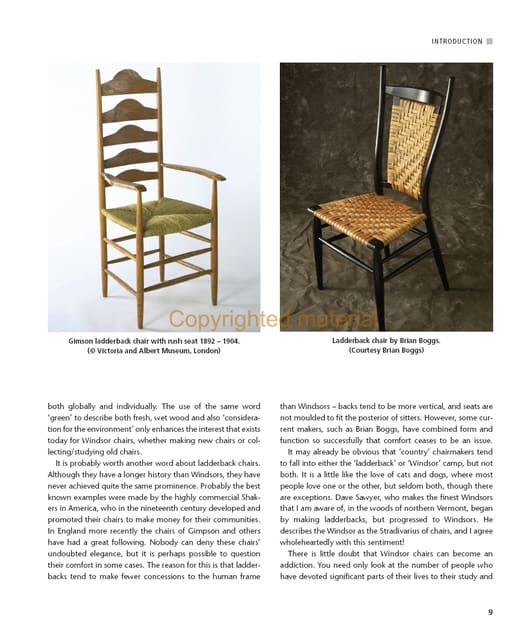 Detailed plans and measurements for four chairs [two English, two American] are provided and allow makers on one side of the Atlantic to attempt a chair from the other side.
