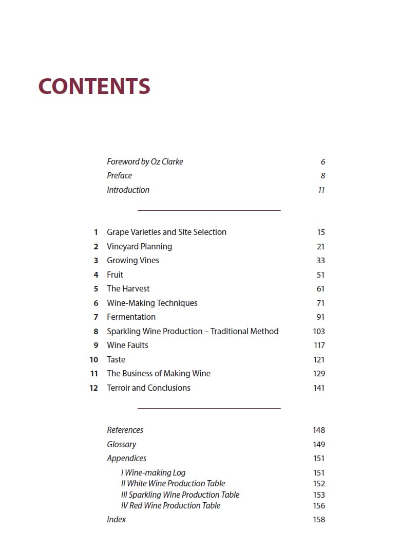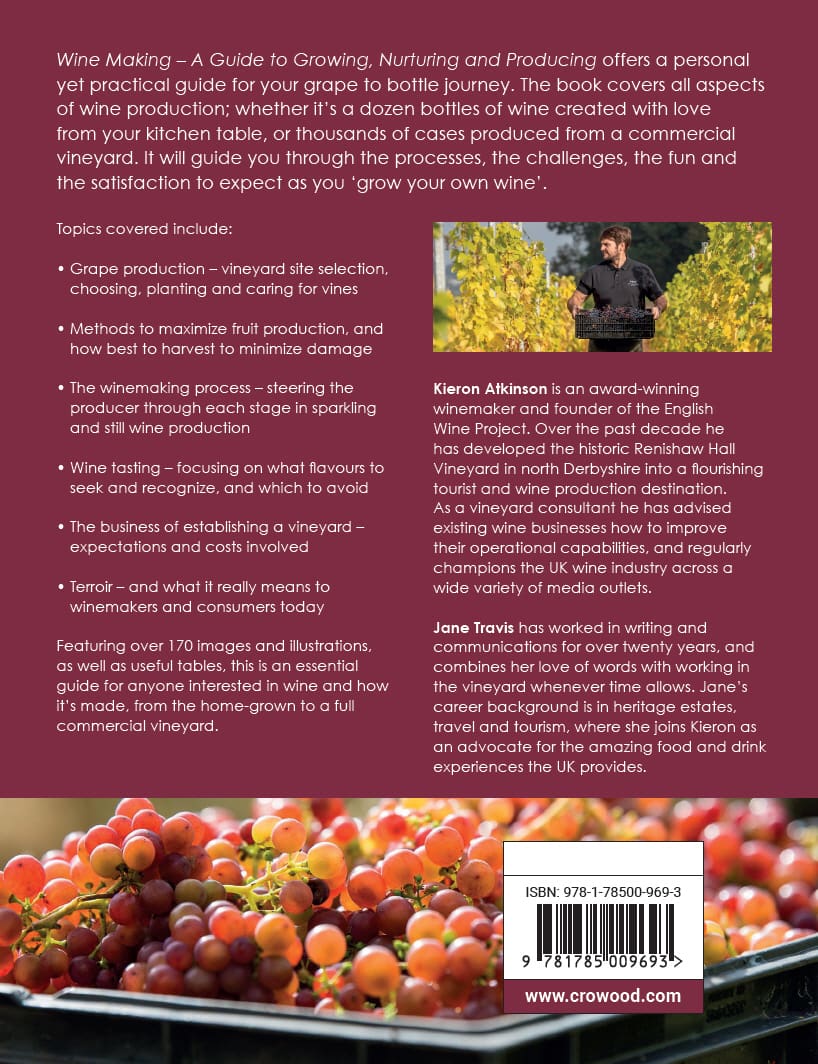 Wine Making – A Guide to Growing, Nurturing and Producing offers a personal yet practical guide for your grape to bottle journey. The book covers all aspects of wine production; whether it’s a dozen bottles of wine created with love from your kitchen table, or thousands of cases produced from a commercial vineyard. It will guide you through the processes, the challenges, the fun and the satisfaction to expect as you ‘grow your own wine’. Topics covered include grape production – vineyard site selection, choosing, planting and caring for vines; methods to maximize fruit production, and how best to harvest to minimize damage; the winemaking process – steering the producer through each stage in sparkling and still wine production; wine tasting – focusing on what flavours to seek and recognize, and which to avoid; the business of establishing a vineyard – expectations and costs involved and finally, terroir – and what it really means to winemakers and consumers today.