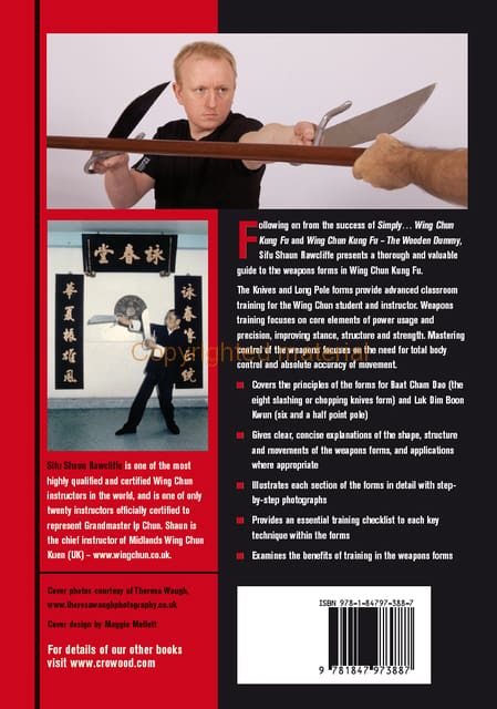 Following on from the success of Simply…..Wing Chun Kung Fu and Wing Chun Kung Fu – The Wooden Dummy, Sifu Shaun Rawcliffe presents a thorough guide to the weapons forms in Wing Chun Kung Fu. The Knives and Long Pole forms provide advanced classroom training for the Wing Chun student and instructor. Weapons training focuses on core elements of power usage and precision, improving stance, structure and strength. Mastering control of the weapons focuses on the need for total body control and absolute accuracy of movement. Covers the principles of the forms for Baat Cham Dao (the eight slashing or chopping knives form) and Luk Dim Boon Kwun (six and a half point pole). Gives clear, concise explanations of the shape, structure and movements of the weapons forms, and applications where appropriate. Illustrates each section of the forms in detail with step-by-step photographs. Provides an essential training checklist to each key technique within the forms. Examines the benefits of training in the weapons forms.