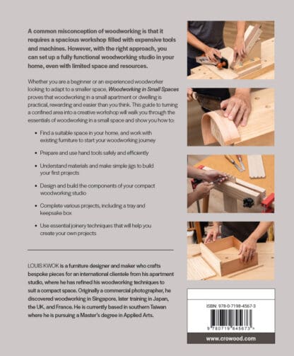 Whether you are a beginner or an experienced woodworker looking to adapt to a smaller space, Woodworking in Small Spaces proves that woodworking in a small apartment or dwelling is practical, rewarding and easier than you think.